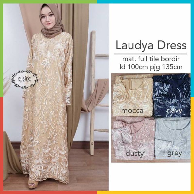 Name: Ada Jumbo Best Seller Laudya Dress By Elsire Tile Bordir Brokat Belakang Full Kondangan